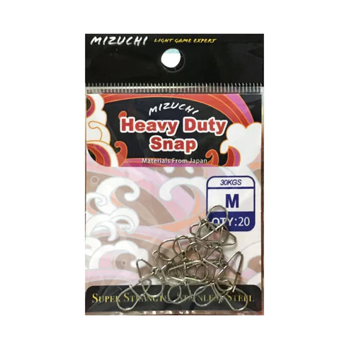 The Mizuchi Heavy Duty Snap is a premium snap designed for anglers targeting big game in demanding environments. Engineered with robust materials and a secure locking mechanism, this snap ensures reliable performance when it matters most. Ideal for connecting lures, leaders, or rigs, it delivers unmatched strength and ease of use for heavy-duty fishing applications.