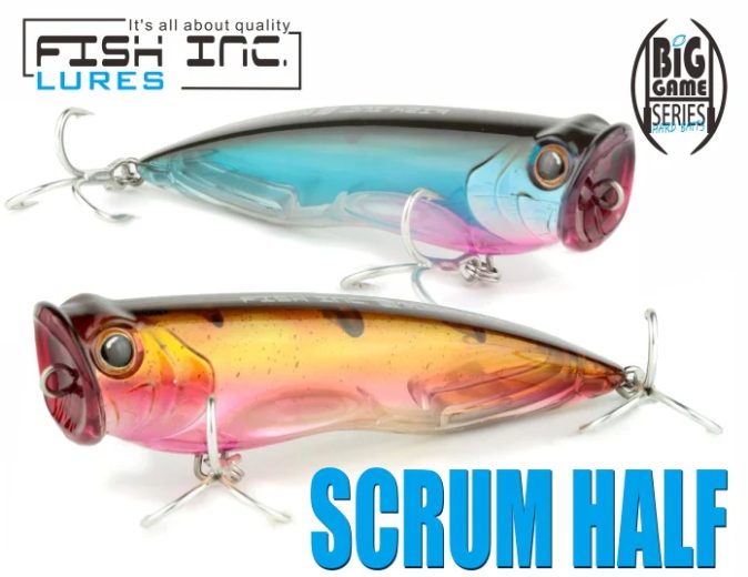 The Scrum Half is the first of the poppers in the Big Game Series, great for a variety of game fish. Large concave mouth that moves a lot of water but still easy to work because of its size. Unique belly design towards the tail results in lateral movement that gives a more realistic action.